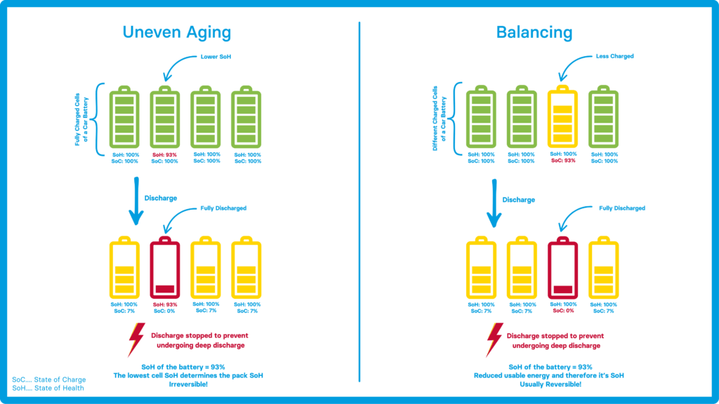 - Energetický SoH : Měří využitelnou energii v kilowatthodinách.